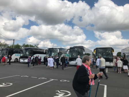 Les premiers cars malades arrivent sous le hall de Saint-Frai, ce sont alors les premiers signes des au-revoir. Retrouvailles furtives pour certains pèlerins à Gauriaguet pour le repas. Les malades bien installés, maintenant, le silence s’installe dans les bus, c’est le temps du repos. Chut !