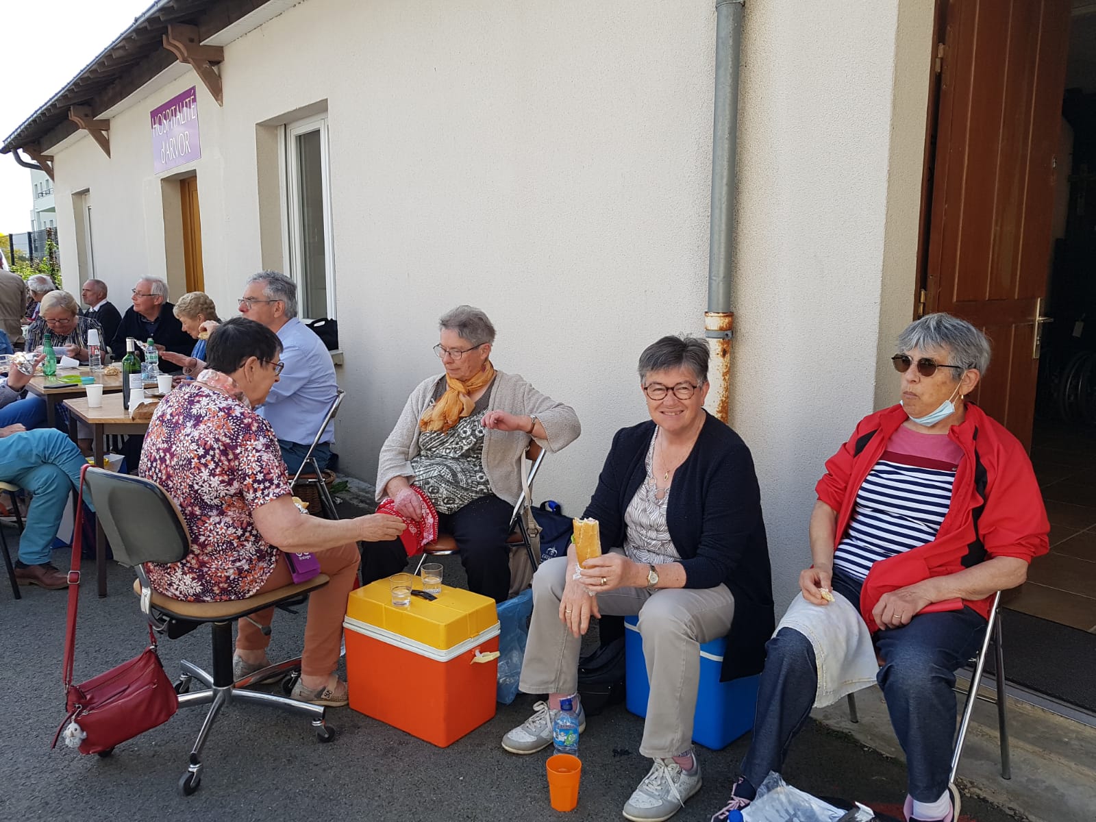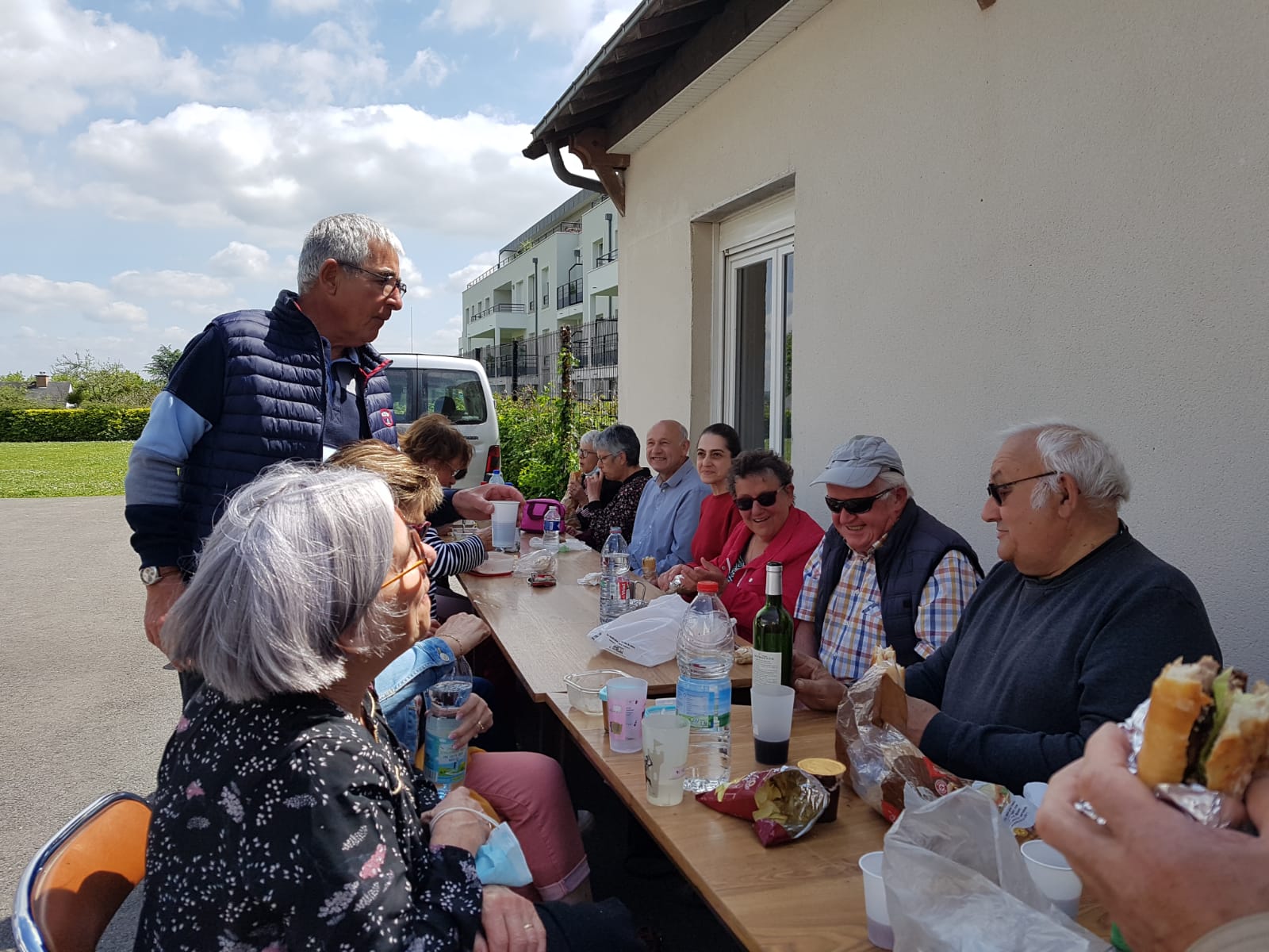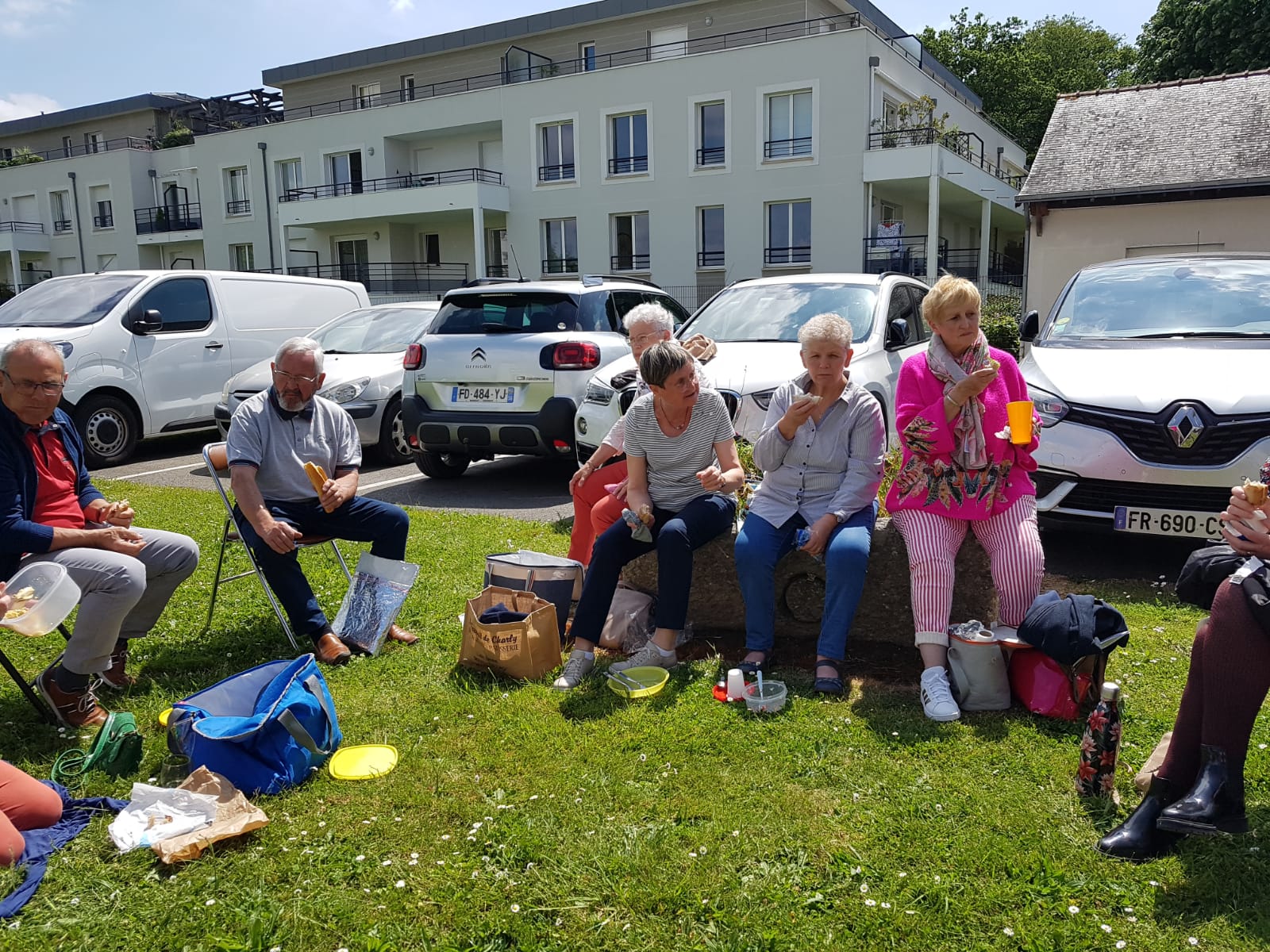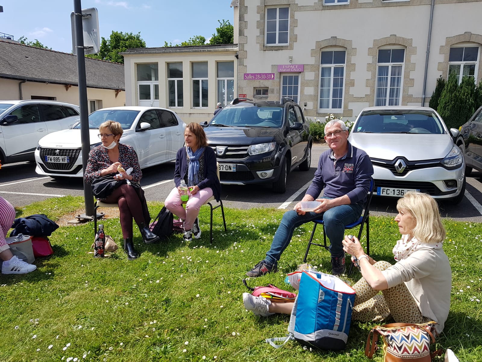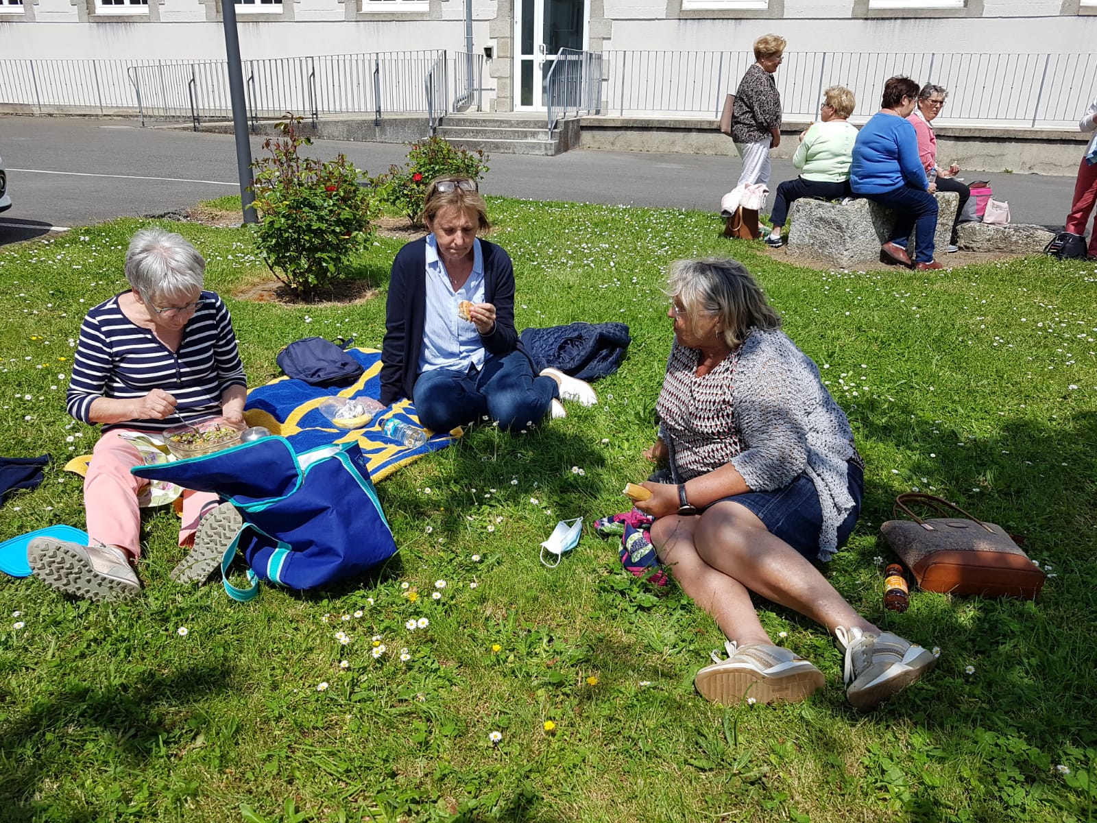 C’est le temps du repas de midi au soleil, sur la pelouse
