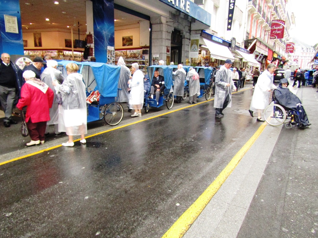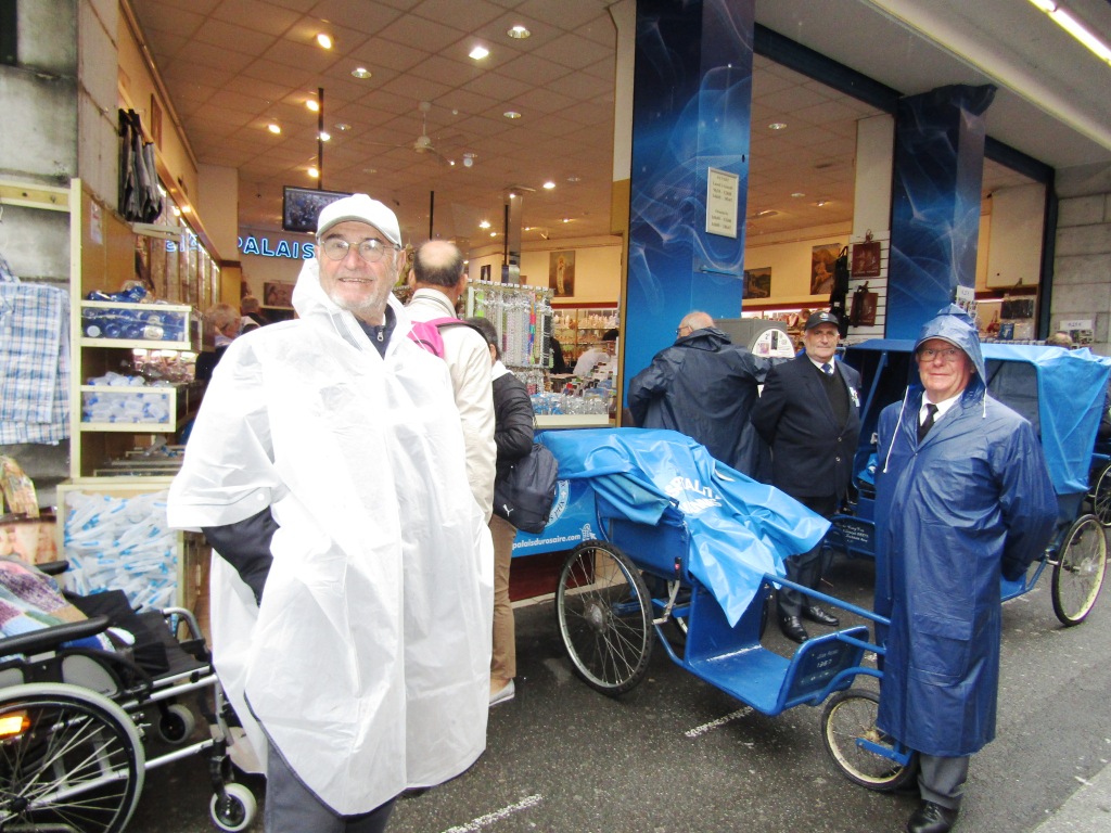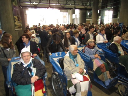 L’heure du départ vers la célébration du jour s’annonce. Au fur et à mesure, malades, hospitaliers, et hospitalières se présentent devant les ascenseurs. Les hospitaliers de roulage attendent les malades au niveau du hall pour un départ ensemble vers les Sanctuaires.